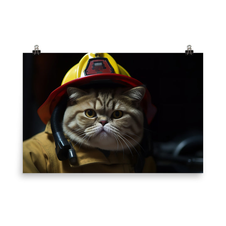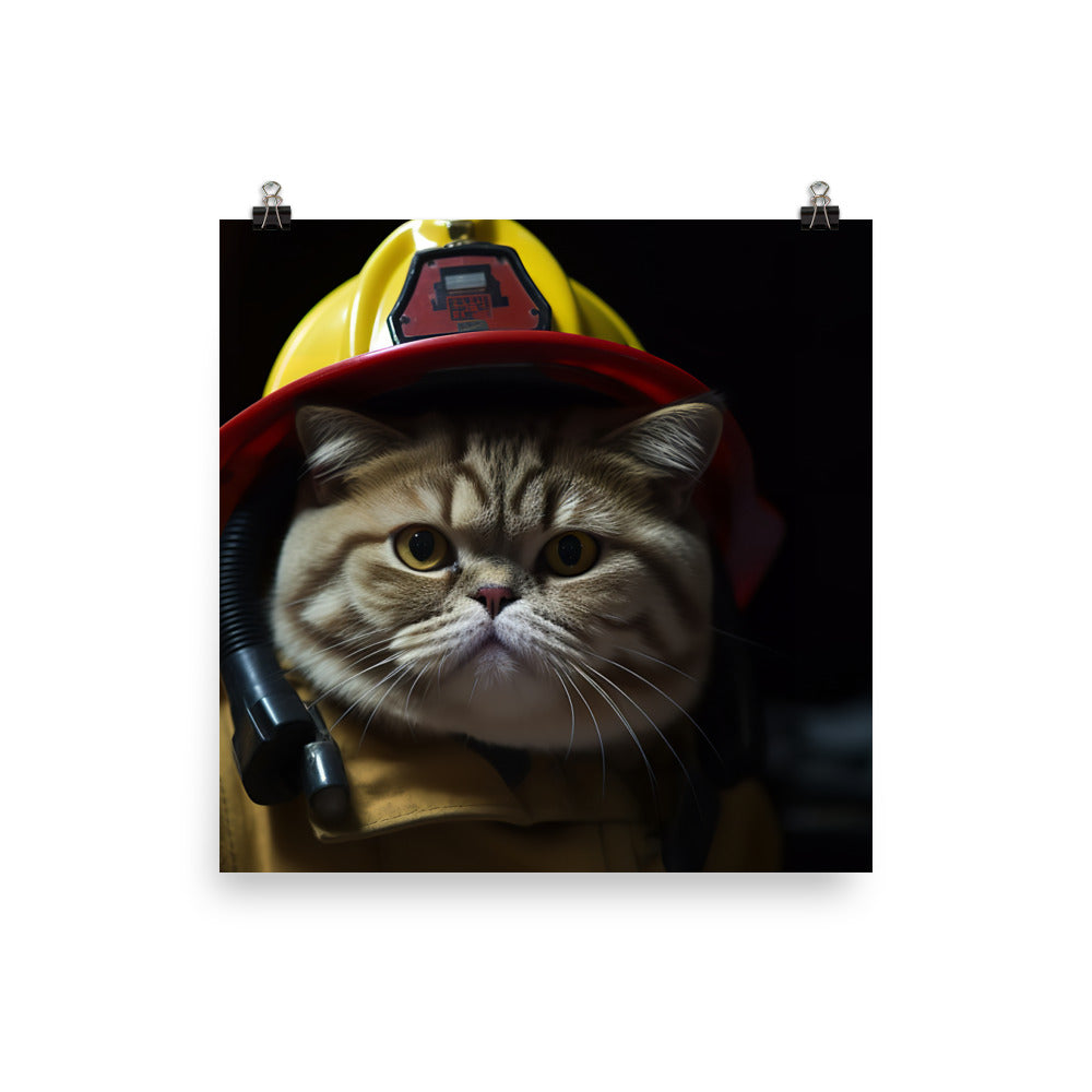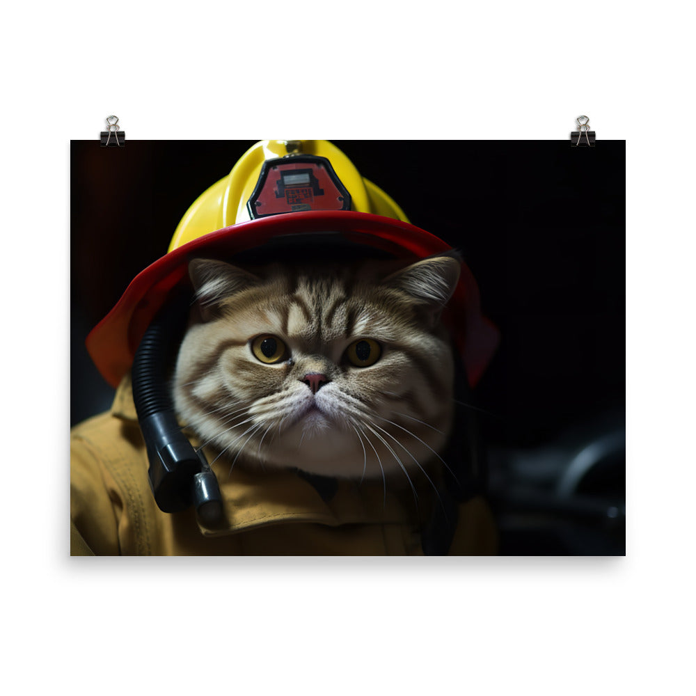 Exotic Shorthair Firefighter Photo paper poster - PosterfyAI.com