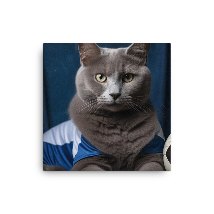 Russian Blue Football Player Canvas - PosterfyAI.com