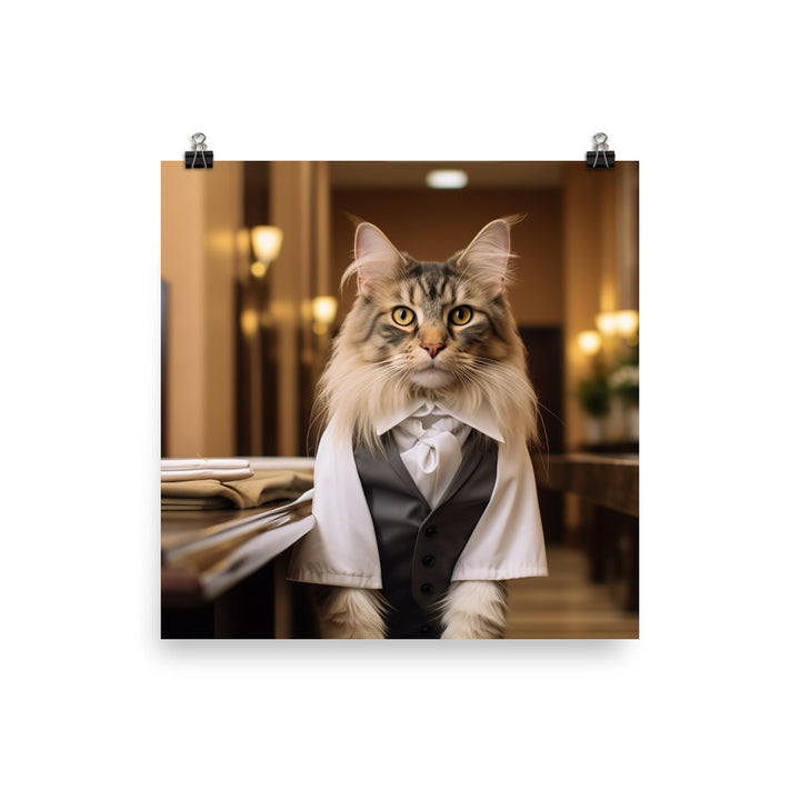 Maine Coon Hotel Staff Photo paper poster - PosterfyAI.com