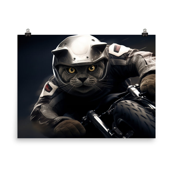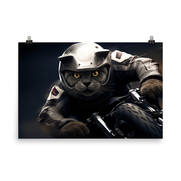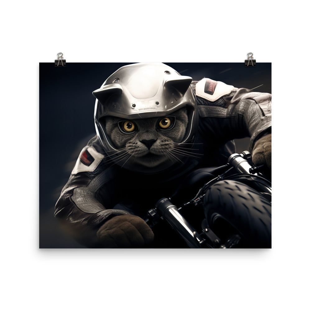 British Shorthair Superbike Athlete Photo paper poster - PosterfyAI.com