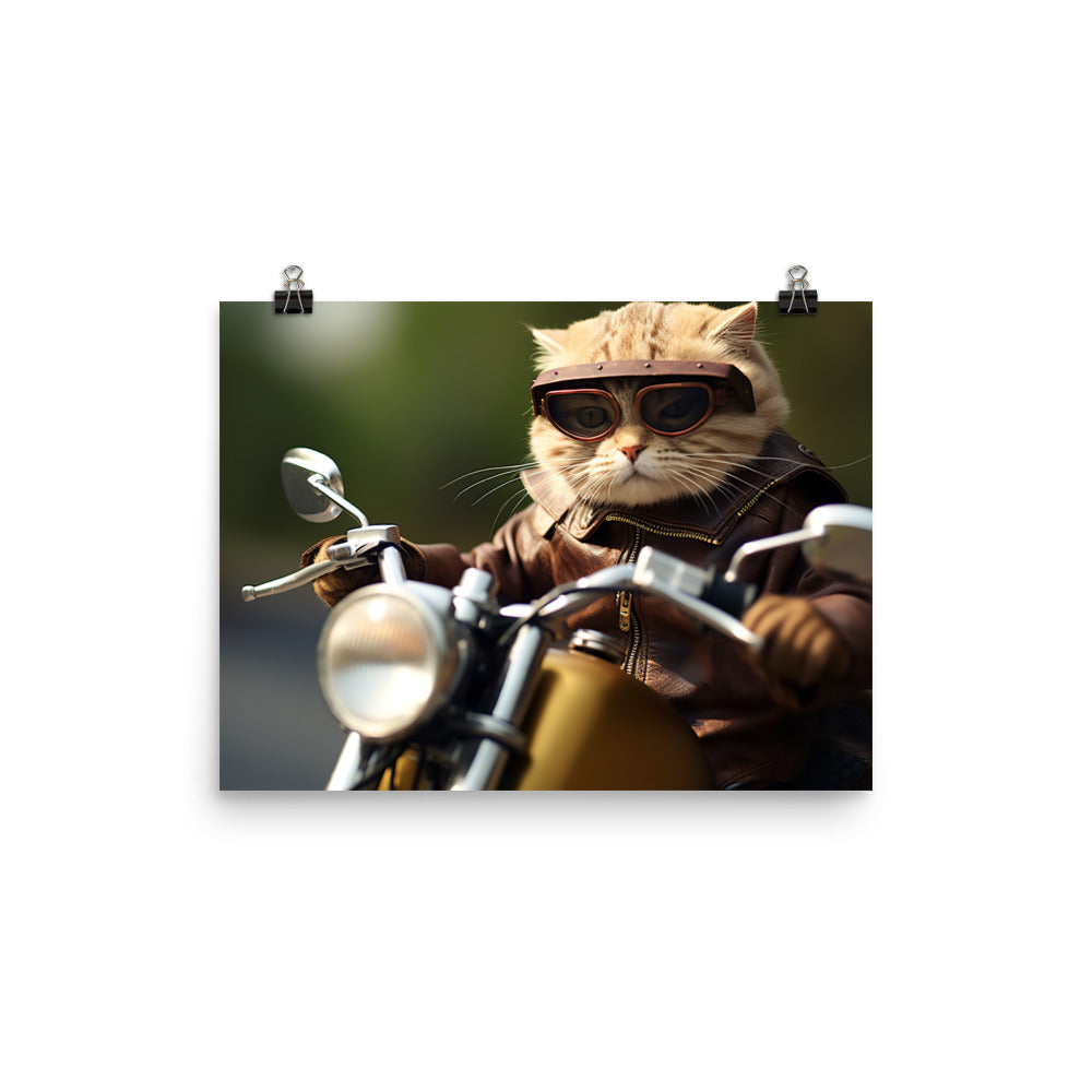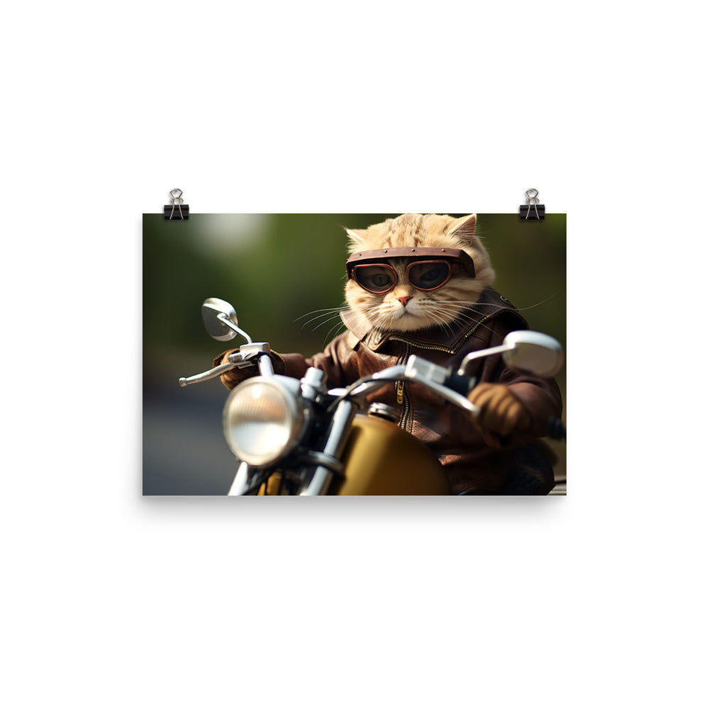 Scottish Fold Superbike Athlete Photo paper poster